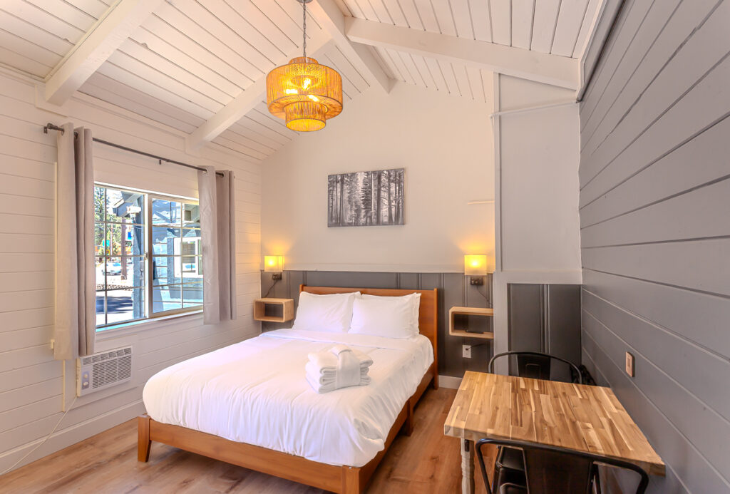 Welcome to Tahoe Mountain Inn, a cozy boutique stay in the heart of South Lake Tahoe. We’ve recently expanded, adding 23 brand-new, thoughtfully designed guest rooms to our charming property. Each room features warm, mountain-inspired décor and modern comforts, offering a relaxing home base for all your Tahoe adventures.